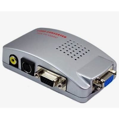 Computer-VGA-to-TV-RCA(AV)-Composite-Converter Adapter S-Video Box PC Laptop Mac. LCD Plug & Play, No other software or hardware required VGA to Composite Video ( RCA ) or S-Video converter. Adjust and set preferences with onscreen display and front-mount control panel; Compact, portable size Video standards: NTSC/NTSC-EIAJ/PAL/PAL-M/PAL-N/SECAM (via RGB out); Resolutions supported: 640 x 480 (up to 85 Hz), Input port: DB15 (VGA); Output ports: Composite video (RCA), S-video and HD15 (VGA)