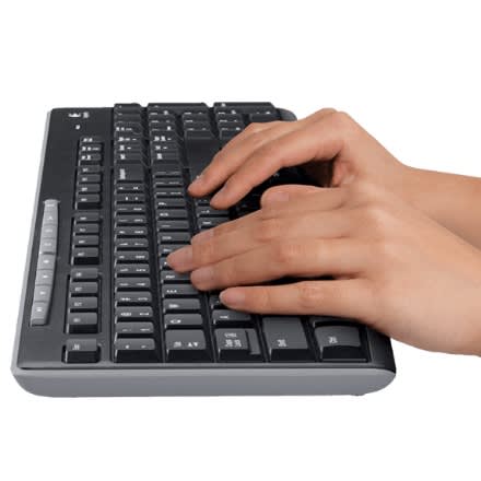 Advanced 2.4 GHz wirelessWork or play in more places. The wireless connection virtually eliminates delays, dropouts and interference and gives you a range of up to 10-meters range.** Wireless range may vary due to environmental and computing conditions.Compact mouseTake the mouse with you. This comfortable mouse fits easily into computer bags and pocket to travel with your computer.Extended battery lifeA 36-month keyboard and 12-month mouse battery life & mdash;plus on/off switches & mdash;means you can go for months without the hassle of changing batteries.**** Keyboard battery life calculation based on an estimated two million keystrokes/year in an office environment. User experience may vary. Mouse battery life may vary based on user and computing conditions. Reliable 2.4 GHz wireless connection: A tiny Logitech nano-receiver connects both the keyboard and mouse using just one USB portLong battery life: Get up to 36 months of keyboard power and 12 months of mouse power without changing batteries (Keyboard and mouse battery life may vary based on user and computing conditions)Eight hot keys: Instantly access your movies, music, the Internet, e-mail, volume, play/pause and moreAll-in-one setup: Includes a full-size keyboard with quiet, low-profile keys plus a portable contoured mouse for comfortable controlPlug and play simplicity for Windows PCs: Works right out of the box with Windows 10 or later, Windows 8, 7, Windows Vista, Windows XP, Chrome OS. Not Bluetooth compatible. (Kindly refer the user manual given below for troubleshooting steps) Processor PA-8200Wireless Type 2.4 GHz Radio Frequency, 802.11abgNational Stock Number 7025-01-497-7849 Brand Name LogitechItem model number 920-004536Hardware Platform PCOperating System Windows 8, Windows 7Item Weight 8.8 ouncesProduct Dimensions 20.6 x 6.2 x 1.9 inchesItem Dimensions L x W x H 20.6 x 6.2 x 1.9 inchesColor BlackProcessor Brand IBMBattery Type AABatteries 2 AA batteries required. (included)