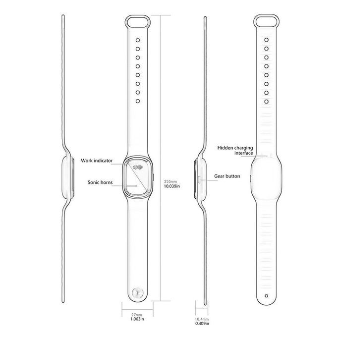 Features: 1. 3 in 1 use: ultrasoni smart mosquito repellent wat h, 3 in 1 use, temperature measurement, time display and mosquito repellent. 2. Mosquito repellent prin iple: The bra elet has the effe t of repelling mosquitoes by imitating the sounds female mosquitoes hate, su h as the sounds of male mosquitoes and dragonflies. In the wild, female mosquitoes that su k blood are all pregnant and laying eggs. In this pri e range, female mosquitoes will avoid male mosquitoes and avoid a se ond on eption. So, ulating the sound of male mosquitoes an a hieve mosquito repellent effe t. 3. Produ t features: pure physi al mosquito repellent, non- mosquito repellent, safer, more ured, more environmentally friendly and healthier. Elde y people, hildren, pregnant women and pets an wear it. The produ t an be worn indoors and outdoors (by the sea, in parks), in amping, hiking, ). 4. Long Enduran e: This produ t is built-in 90mAh battery, harge for 30 minutes, enduran e work for 1 hours. 5. Beautiful: This produ t is made with fun tional exquisite raftsmanship, and a earan e is very stylish and beautiful.