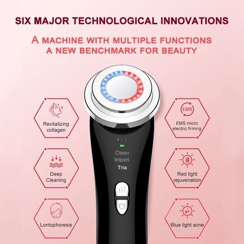 Specifications: Size: 161mm/6.33in*54mm/2.12in*47mm/1.85in Display:LED Rated voltage/rated capacity: 5V/300MA Maximum power: 2.5W Minimum power: 1.0W Rated voltage: 3.7V Standby current: 10UA Material: ABS+PC Feature: 1. Sonic ultrasound, shaping a tight V face, deep eence , make-up thoroughly clean . 2. The absorption effect is 3 times of the mask, 1 mask + 1 introducer 3 masks, 1 bottle eence + 1 introducer 3 bottles eence . 3. Clean and clear positive ion, deeply clean and care skin, clean and more thoroughly. 4. High-frequency ultrasound will eence into nano-small molecules, straight into the muscle bottom . 5. The micro electric current conduction goes out Oedema, pulls taut, smooth water tender muscle. 6. Five-mode adjustment: cleaning, photon skin, eye maage, warm lift blue light, red light. Package Included: 1 * Host 1 * Instruction Manual 1 * USB Charging Cable 1 * Retail Box