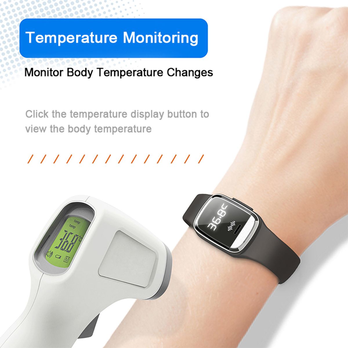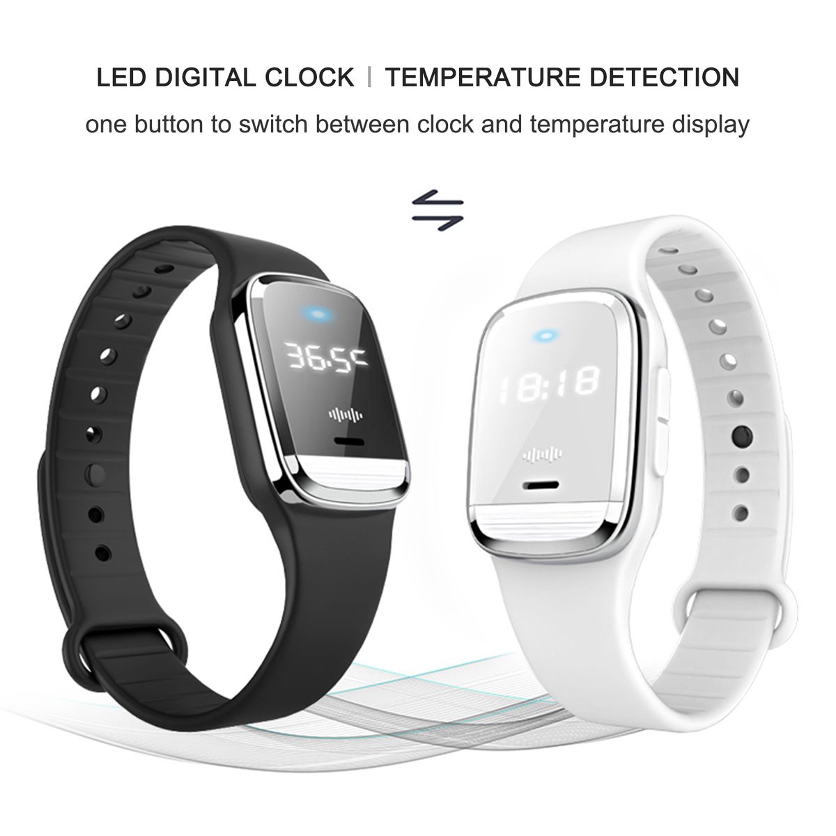 Ultrasonic watch, can be used as a LED clock and thermometer, it will display digital time and your body temperature, centigrade temperature and fahrenheit switchable, real-time detecting your body temperature, great for daily using.