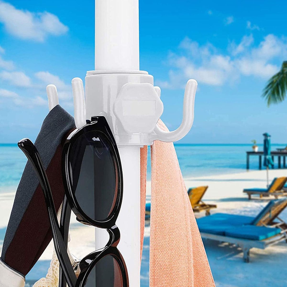 With strong load-bearing design, this umbrella hook provides extra support for larger items such as towels, digital cameras, beach bags as well as small items such as sunglasses, camera, phone.