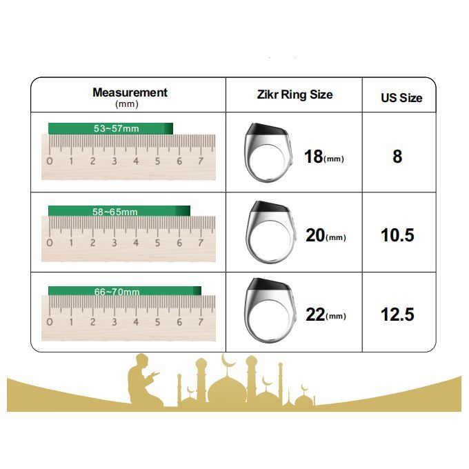 3.Prayer Times Notifications Built-in Bluetooth, Zikr1 ring is easy to connect with Qibla watch and smartphone. You can receive 5 prayer times reminder by Zikr1 ring, Qibla watch or smart phone.