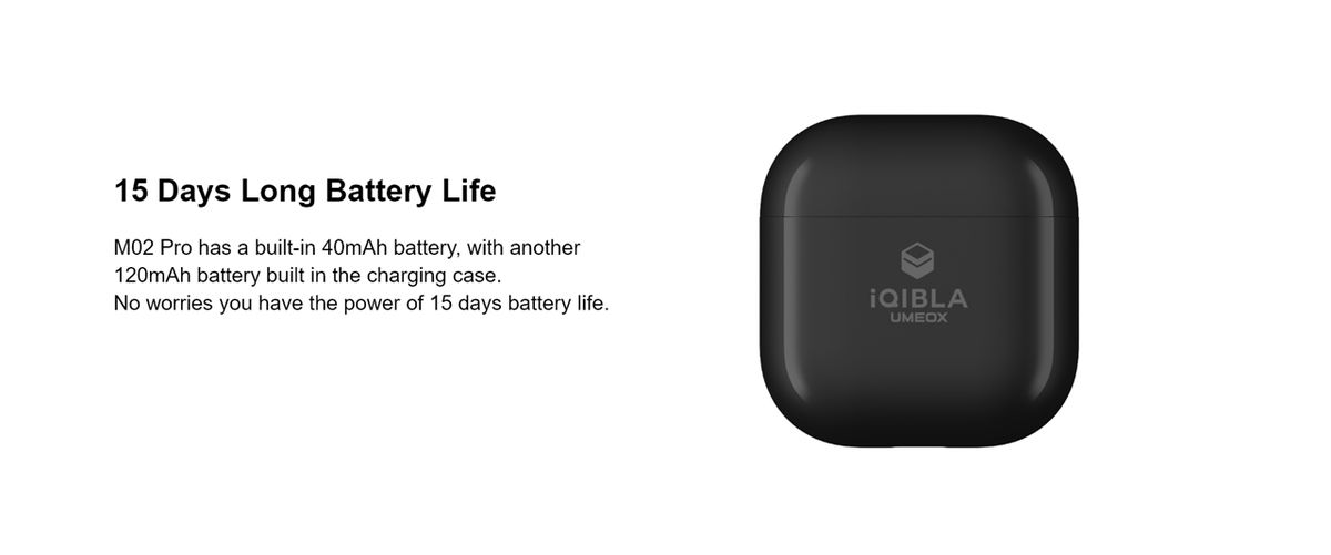 M02 Pro has a built-in 40mAh battery,with another 120mAh battery built in the charing case