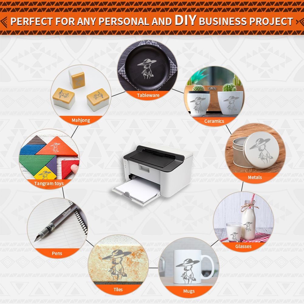 The difference betwee Laser uncoated transfer paper (smart paper) and sublimation paper is that it does not require a special thermal transfer coating, can be directly used for ceramic, pen,metal, stone, glass, plastic and other products .