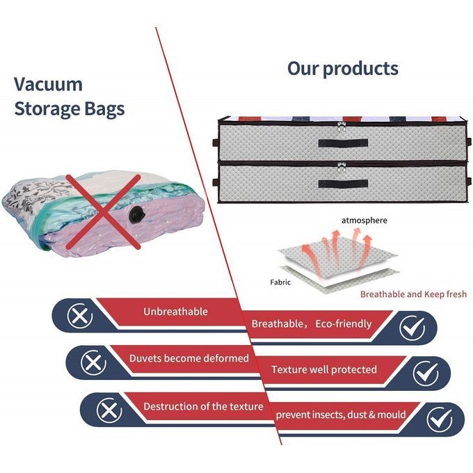 Quality Made: The Under Bed Storage Bags Clothes Organizer are made of 100% ECO-FRIENDLY Non-woven Fabric, light weight, breathable, odorless, and sturdy enough to have a long using life.