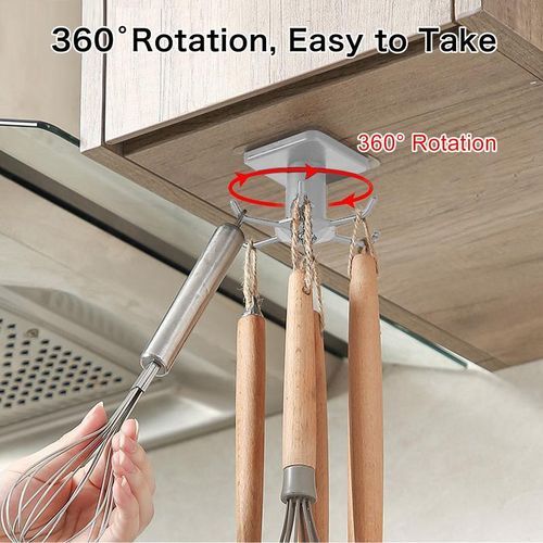 - Under cabinet utensil holder with 6 claws, can be rotated 360 degrees, allowing you to hang up or take down easily.