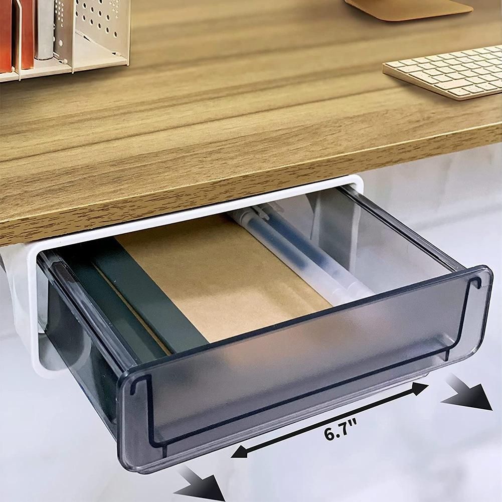[Strong Load-bearing]This drawer under the table uses PS plastic material and strong adhesive, which can effectively bear at least 5KG weight. Thickened drawers make you completely worry-free about the quality of use.