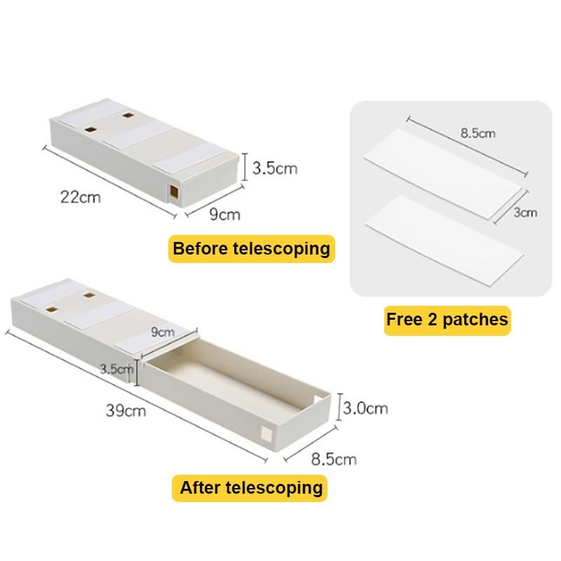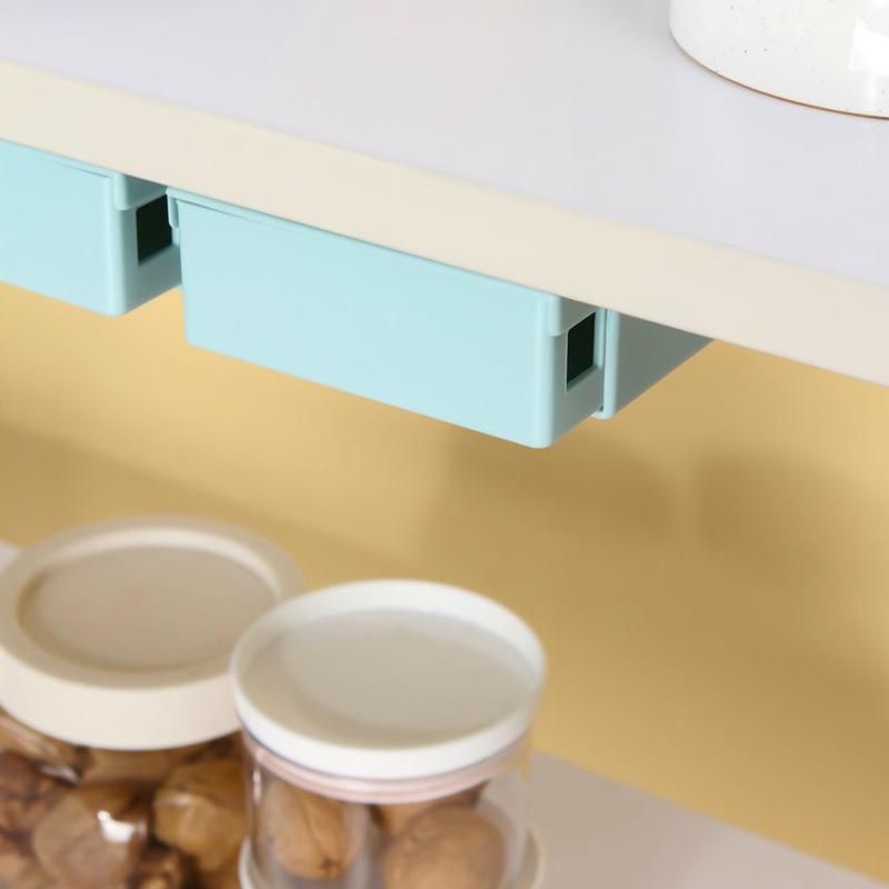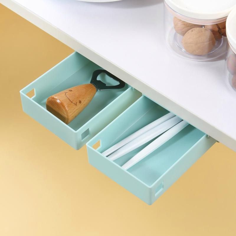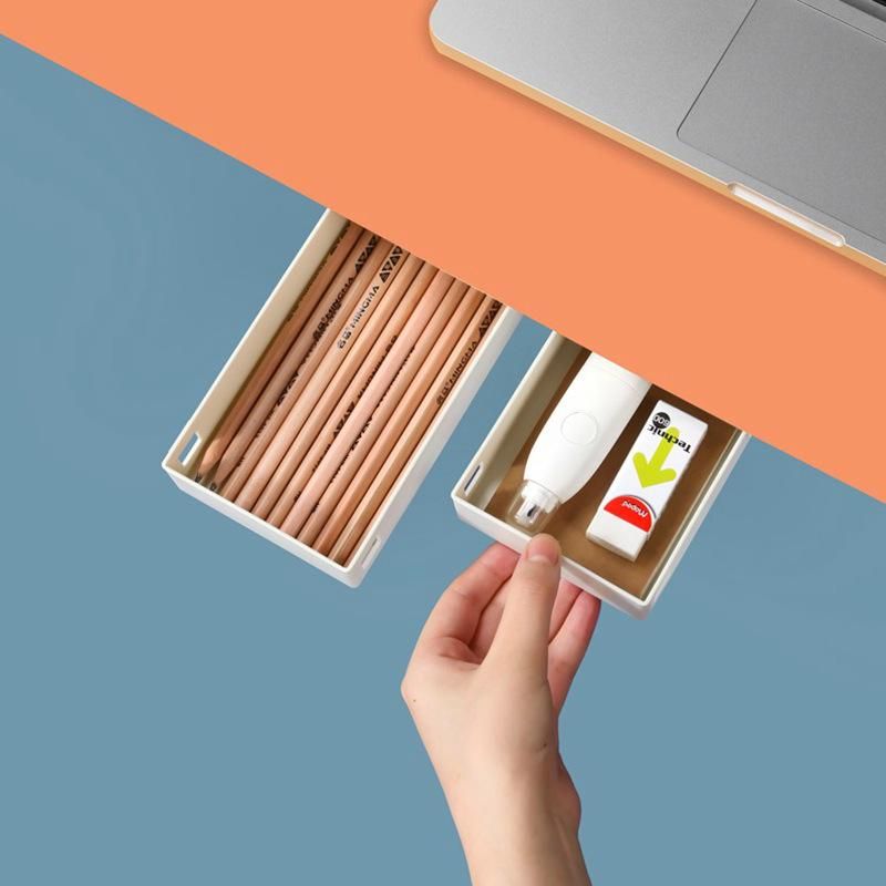 1X Under Desk Drawer Storage Box Home Office Stationery Drawer Organizer Punch Free Cosmetic Cutlery Storage Tray Desk Organizer