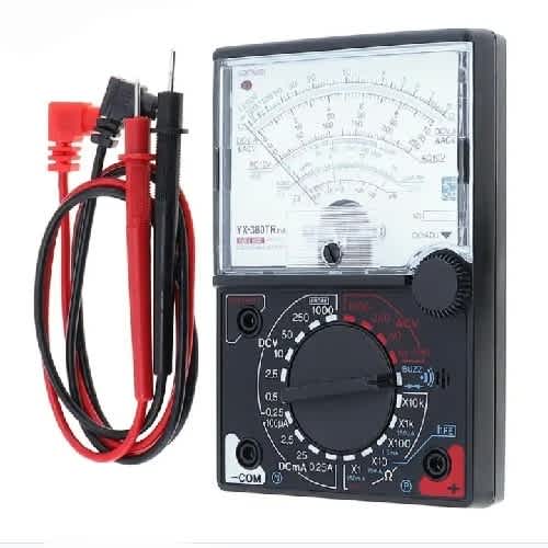 The Sunwei YX-360TRn is an analog multimeter, you can use it to measure AC/DC voltage, DC current, resistance, diode check and transistor leak current, for DC current, it can measure as low as 10 micro amps and up to 250 mA, which is hard to do with a digital multimeter. Specifications: *DCV: 0 - 0.1V & plusmn;1% 0.25V/2.5/10V/50V/250/1000 & plusmn;3% *ACV: 0 -10/50/250/1000V & plusmn;4% *DCA: 0 - 50 & micro;A/2.5mA/25mA/250mA & plusmn;3% *Resistance: 0 - 2K/20K/2MKohm & plusmn;3% 200M & plusmn;5% *dB: -10 dB - 22 dB *Diode check (including LED) *Transistor leak current Features: * All range fused * Compact size * 0 ohm adjustment Accessories: * Test leads (attached) * AA battery X 2 (installed) * User Manual