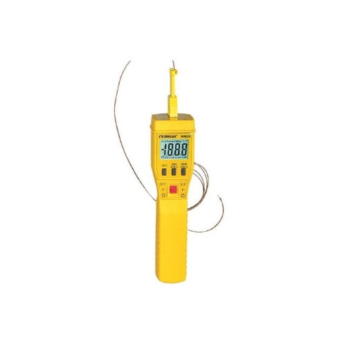 The HH311 is a low cost, high performance handheld meter. It offers a triple display to show the temperature and humidity from a handheld probe and can display data from a separate K type thermocouple connected via a standard SMP type miniature connector to the T2 input. The temperature/humidity probe uses a semiconductor and polymer capacitive sensor. An optional software package is offered to allow data to be read by a PC through the RS232 port. SPECIFICATIONS Range: 0 to 100% RH, -20 to 60 & deg;C (-4 to 140 & deg;F) T2 Range: -200 to 1370 & deg;C (-328 to 2498 & deg;F) Resolution: 0.1 (except T2 for -200 & gt; T2 & gt; 200) Accuracy: & plusmn;2.5% RH at 25 & deg;C, & plusmn;0.7 & deg;C ( & plusmn;1.4 & deg;F) T2 Accuracy: & plusmn;[0.5% rdg & plusmn;1 & deg;C (2 & deg;F)] Humidity Response Time: 75 sec in slowly moving air T1 Response Time: 40 sec in slowly moving air Meter Dimensions: 186 H x 64 W x 30 mm D (7.3 x 2.5 x 1.2') Probe Dimensions: 190 x 15 mm (7.5 x 0.6'), cable stretches to 1.5 m (5') Operating Environment: 0 to 50 & deg;C (32 to 122 & deg;F), 0 to 90% non-condensing Storage Environment: -10 to 60 & deg;C (14 to 140 & deg;F), 0 to 80% non-condensing Power Requirements: One 9V battery (included), AC adapter 9 Vdc 10 mA min Plug Diameter: 3.5 x 1.35 mm RS232: 9600 bps, N, 8, 1 serial interface Battery Life: Approx 100 hours with alkaline battery Weight: Approx 320 g (11.3 oz)
