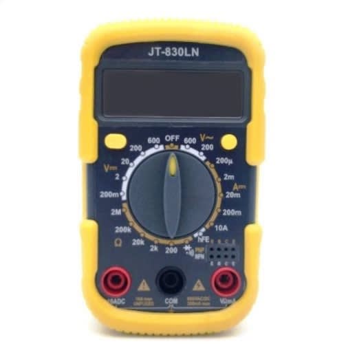 The Digital Clamp Multimeter is an ideal tool for electricians, hobbyists, and general household use. It is easy to operate and features many different functions for measuring current, voltage, and resistance, as well as continuity, transistor, and diode testing. It can be used to diagnose, assemble, and repair circuitry and wiring. Other features include overload protection. Specification: DC Voltage: 200mV/2V/20V/200V/600V; & plusmn;(0.5%+2) AC Voltage: 200V/600V; & plusmn;(1.2%+10) DC Current: 20?A/200?A/2mA/20mA/200mA/10A; & plusmn;(1%+2) Resistance: 200?/2k?/20K?/200K?/2M? & plusmn;(1%+10) Display Count: 1999 Manual Range Data Hold LCD Backlight Size: 105*60*27mm(4.1 x 2.4 x 1 inch) Please note: Please read relevant information carefully and observe all the warnings and note strictly. Sometimes, the readings will change at a range due to the influence of the exposure to electromagnetic fields, then just get any one within those readings. The meter can be cleaned with soft clean cloth to remove any oil, grease or grim. Do not use liquid solvent or detergent. Work temperature:0~40 & ordm;C.the humidity Package: 1 x JT-830LN Digital Multimeter 2 x Test Leads (pair) 1 x 9V Battery 1 x User's Manual