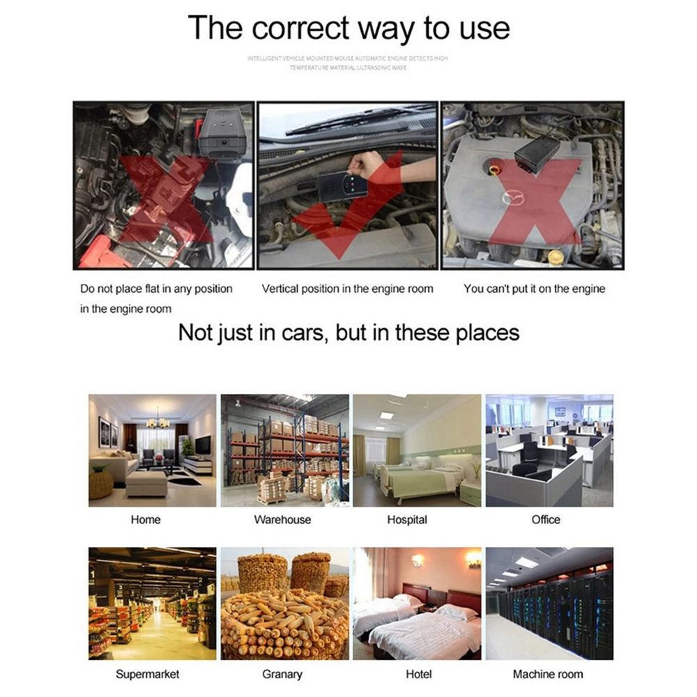 Vehicle Pest Repeller: Emits a combination of ultrasounds and LED flashlights to deter pesky animals from entering your vehicle.
