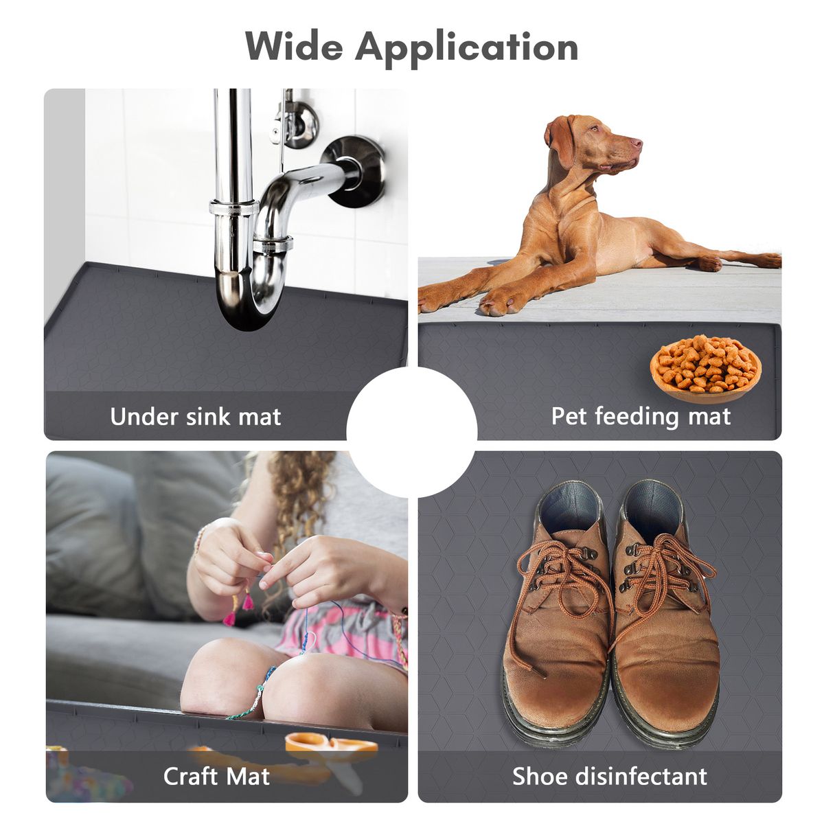 Under sink mat are not only for kitchen cabinets and bathrooms but also used as a pet feeding mat/boot tray/mini fridge drip tray/craft mat and so on.
