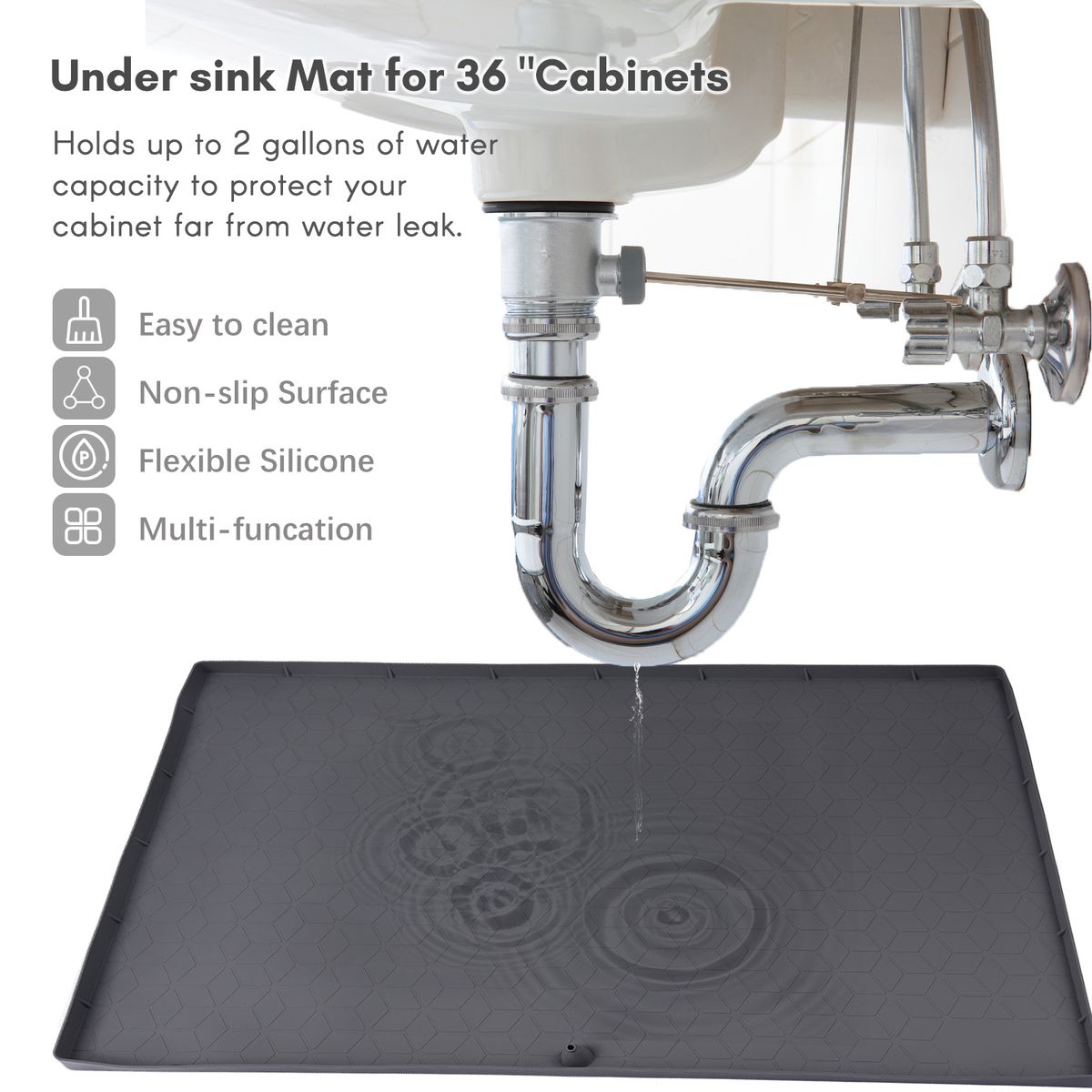 1in heighten mat edge can hold more than 2 gallon leaking liquid to help you easily solve the problem of cabinets leaks.
