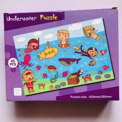 boost skills in hand-eye coordination, motor skills, problem solving, etc. Challenge your family and friends! The pack contains 45 puzzle pieces that can be put together to create a colourful underwater scene with different fun things to do under water. Puzzles are a great way to keep children engaged, thinking and learning. Puzzles are a great way to create a fun learning opportunity for kids. Simple jigsaw puzzles help children develop finger strength, perseverance and problem solving skills. Made of sturdy chipboard on recycled paper. Natural and environmentally friendly. Well made & pieces fit together well with unique precision cut shapes. More than 2mm thick puzzle. Children's jigsaw puzzles are a fun, inexpensive way to provide hours of fun and entertainment assembling this remarkable puzzle together! Use to boost skills in hand-eye coordination, motor skills, problem solving, etc. Challenge your family and friends! The pack contains 45 puzzle pieces that can be put together to create a colourful underwater scene with different ways to have fun under water. Puzzles are a great way to keep children engaged, thinking and learning. Puzzles are a great way to create a fun learning opportunity for kids. Simple jigsaw puzzles help children develop finger strength, perseverance and problem solving skills. Made of sturdy chipboard on recycled paper. Natural and environmentally friendly. Well made & pieces fit together well with unique precision cut shapes. More than 2mm thick puzzle. Children's jigsaw puzzles are a fun, inexpensive way to provide hours of fun and entertainment assembling this remarkable puzzle together! Use to boost skills in hand-eye coordination, motor skills, problem solving, etc. Challenge your family and friends! The pack contains 45 puzzle pieces that can be put together to create a colourful underwater scene.