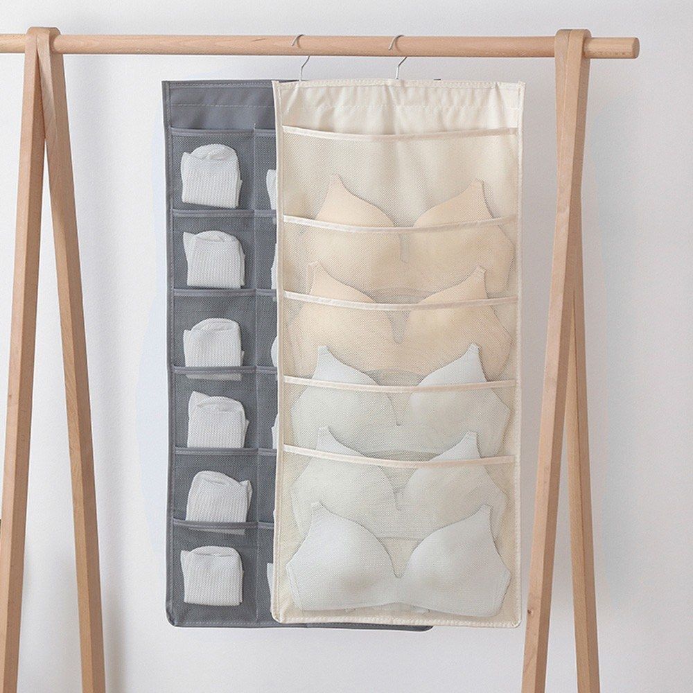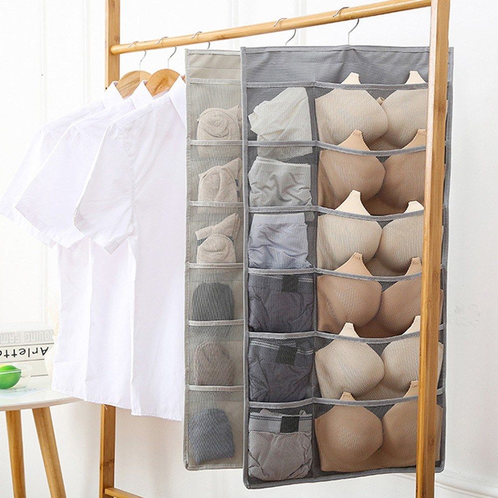 Double Sided Hanging Storage Bag for for Socks Bra Underwea Mesh Breathable Grids Closet Wardrobe Home Organizer