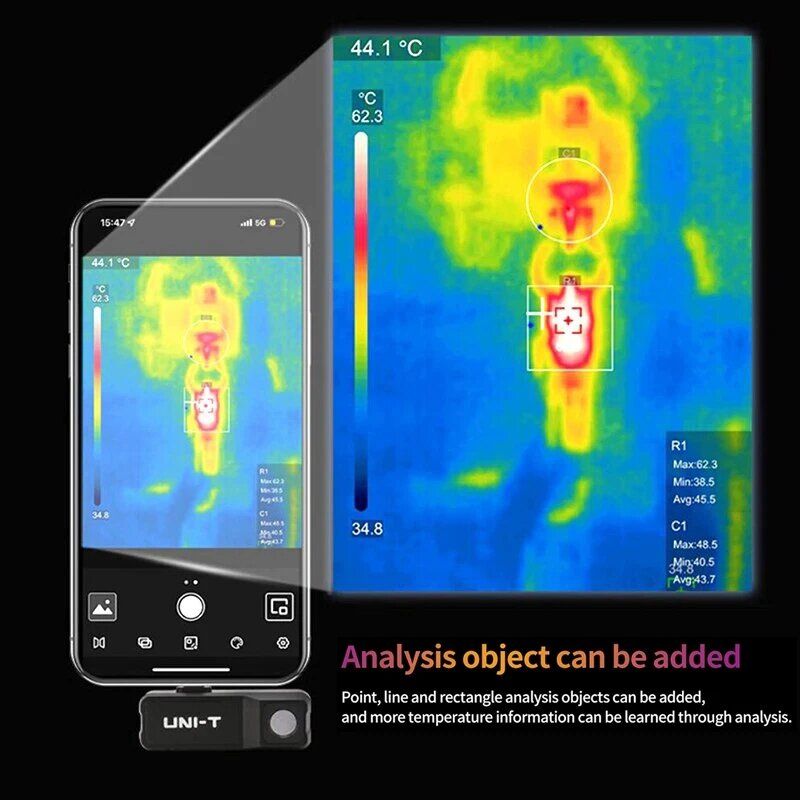 UNI-T UTi120MS Mobile Thermal Camera for iPhone iOS Smartphone Infrared Thermal Imaging High Low Temperature Tracking Analysis