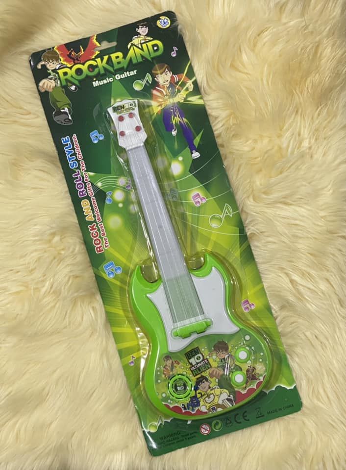 ROCKBAND GUITAR FETCHING LIGHT & MUSIC: This amazing guitar Rock And Roll Music Guitar With Light And Sound This Guitar Will Help To Improve Your Child's Musical And Creative Skill. Realistic features and looks gives your child a rock star looks.FUN FOR KIDS - This toy is safe fun for all kids about 3 years and up, While playing the guitar, it will makes fun sounds and flashes lights, they will enjoy playing the guitar. GREAT EDUCATION TOY - This guitar will be a great introduction for a young child! Children is most sensitive to sounds, when playing this toy, the sweet music can simulate the children's hearing, exercise hand-eye coordination and motor coordination. MUSICAL EDUCATION - Music is very important for a growing mind, kids can enjoy crystal-clear sound on the stage or in the studio with this guitar, and cultivating music interesting and sense of music. Features: Perfect workmanship and high Simulation. Rocking Realistic Guitar Sound Effects. Coming with back strap for easy and convenient carrying Powered by: 3 x AA batteries(Not Included).Exercise hand-eye coordination, motor coordination Hearing: The sweet music can simulate the children's hearing. Perfect for children Stage performance, Musical Instruments or Home decoration.