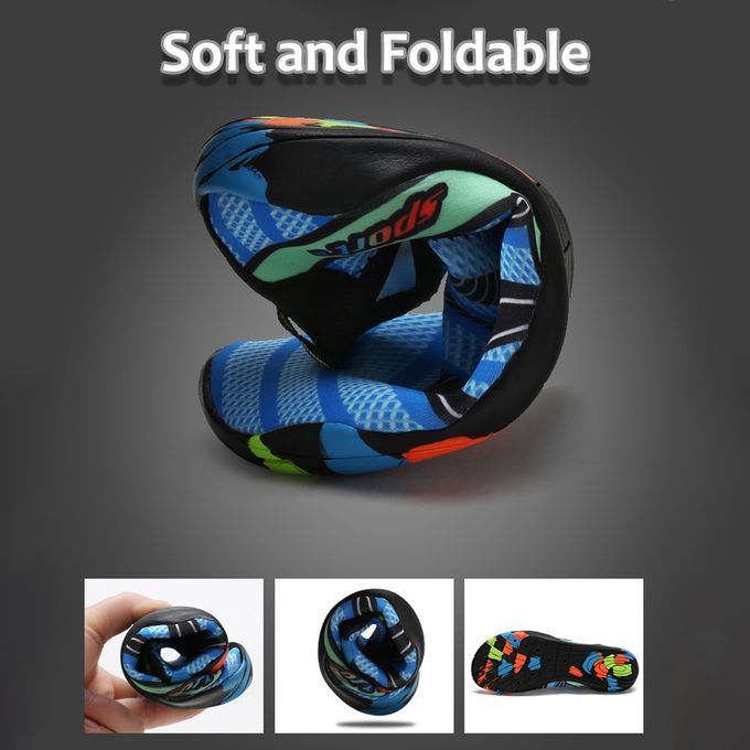 Upper with stretch mesh fabric, breathable, foldable, and quick dry.