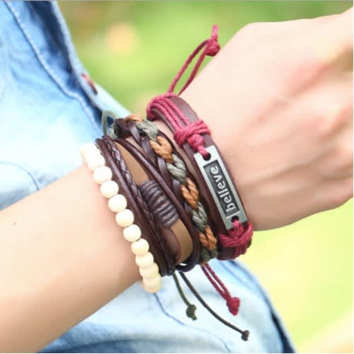 Buy Unisex Believe Leather Bracelets- 4pieces in Nigeria