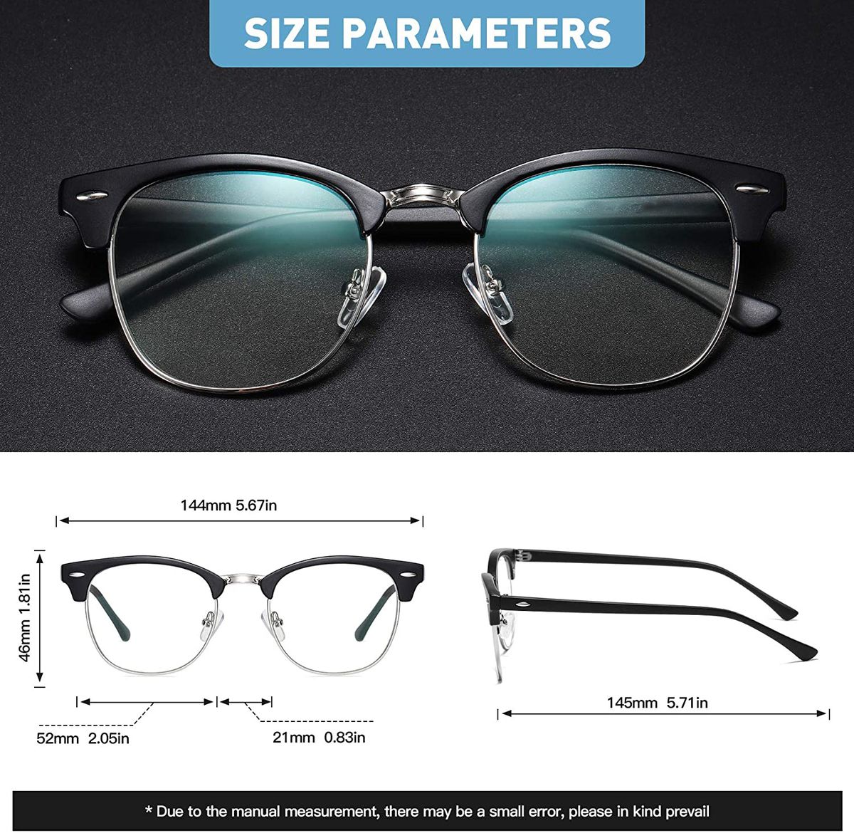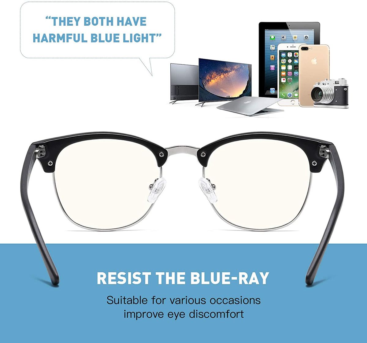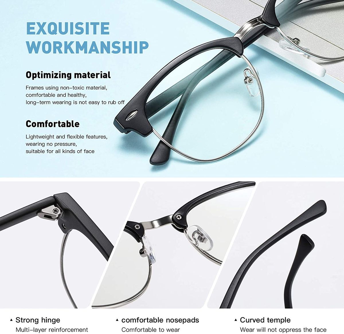 CLASSIC FASHION DESIGN - Our anti eye strain glasses use high quality composite, classic half frame design fit various face.