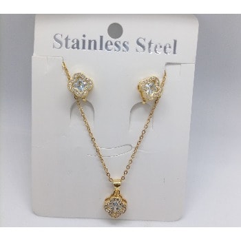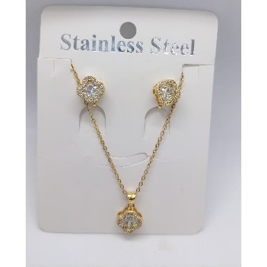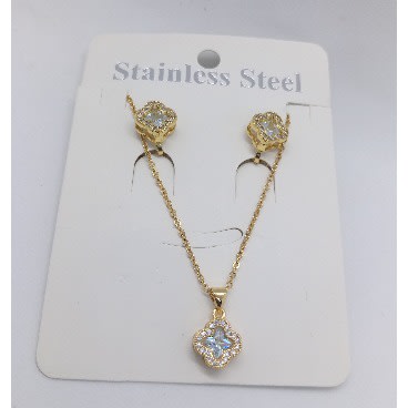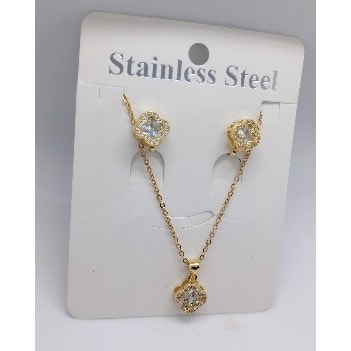 Buy Unisex Cubic Zirconia Iced Out VCA Clip Stud And Necklace Jewelry Set- Gold in Nigeria