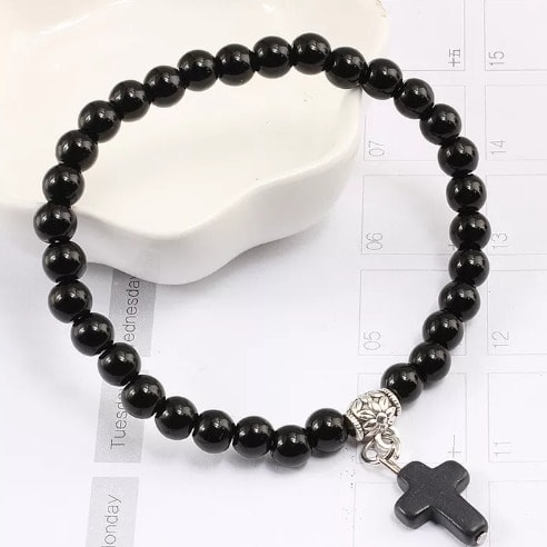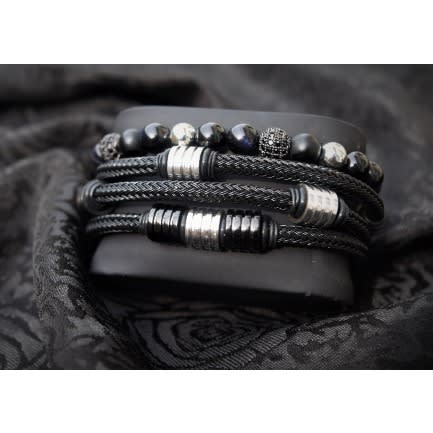 Black braided steel cord with Silver & black accessories