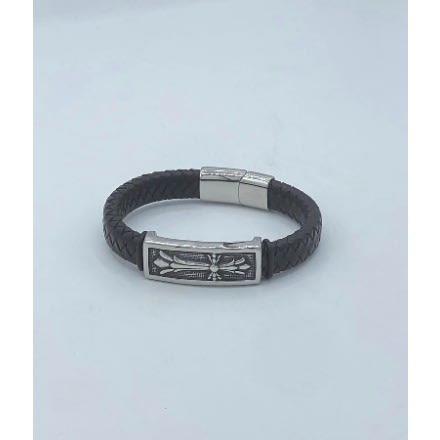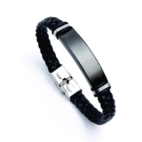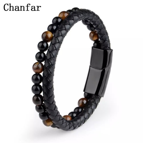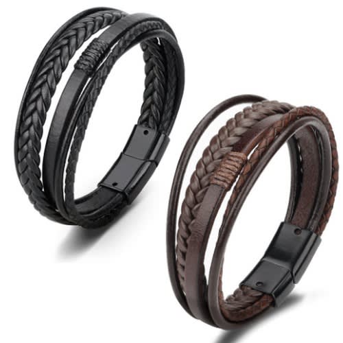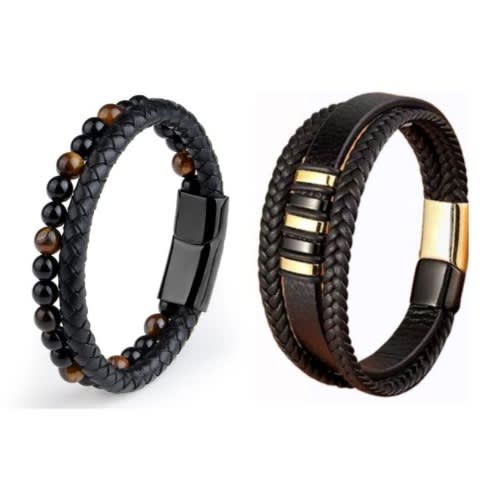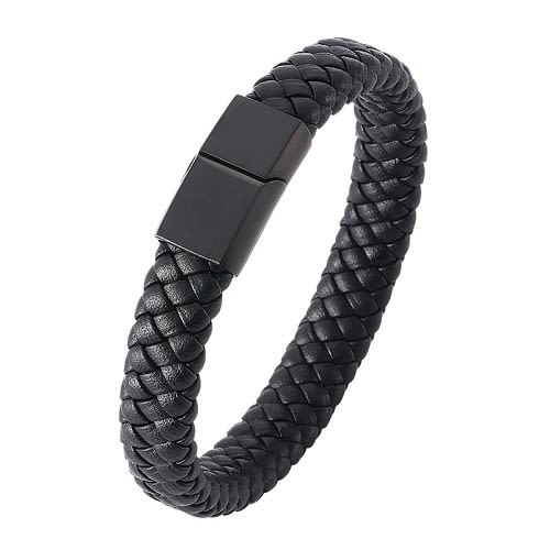 Black braided Classic Genuine Leather Metal Men's Bracelet well woven and finely hand crafted and manufactured to perfection to go well with any kind of oufit and highly durable to withstand any kind of weather quality of the finest at hand and complete light weight on the wrist .it also comes with a smooth stainless steel metallic alloy clasp which helps to fasten the bracelet to your wrist firmly which is well made which also gives it a dynamic and very stylish and bold look .100% and also witha magentic buckle