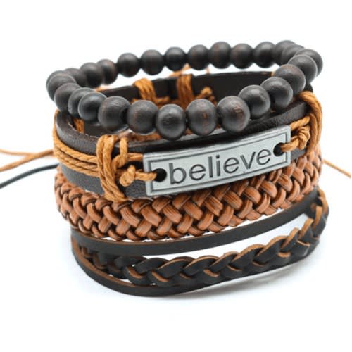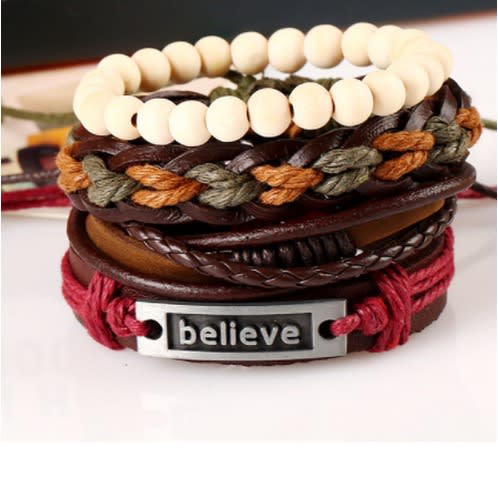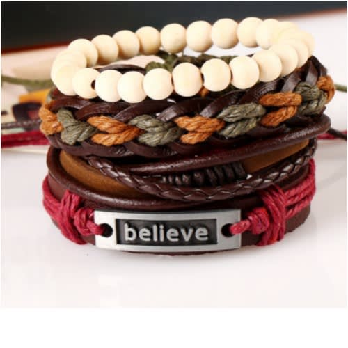 Package Include:4PCS/SET PU Leather Braided Bracelet