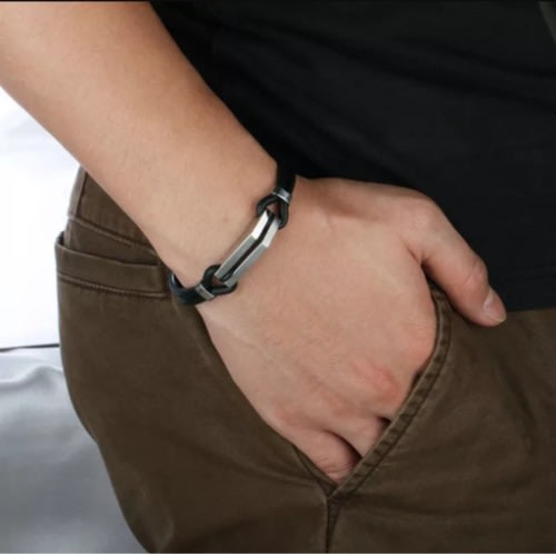 Fashion leather bracelet, for men that knows what looking good is all about. This unique design bracelet is made with pure leather, stainless steel clasps and charm. This unique design leather bracelet is suitable for any kind of outfit, fit any size of hands. This charming fashion bracelet is black in color. Soft in feel and maximum comfort, easy to wear, slide the clasps to unlock.Quality is our priority, so don;t compromise quantity for quality, it can be presented as special gift to your loved one for any occasion or anniversary. One piece of this fashion leather bracelet . easy to wear, slide the clasps to unlockGet this bracelet and enjoy the value of your money, your look without this unique design quality leather bracelet is incomplete, people out there want to see you dressed complete, wear something classy and attractive look that you really deserve.This bracelet for men are sure to capture compliments.Gift it to your true gentleman or a special friend, or treat yourself for a trendy Wristband.