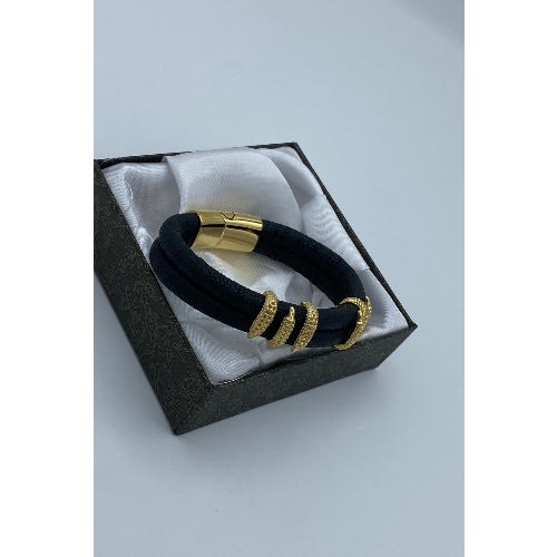 black steel double braided with gold clasps
