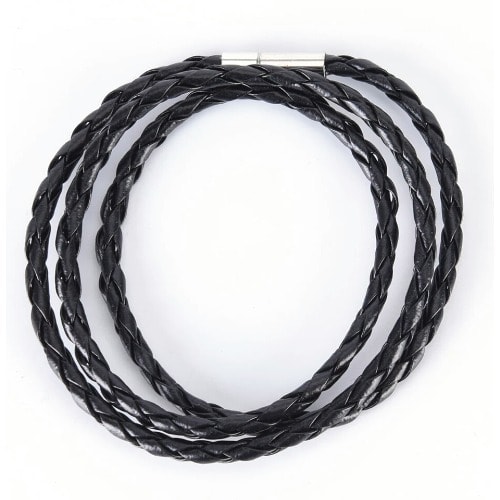 Leather Braided Bracelet With Magnetic Buckle - 20" - Black