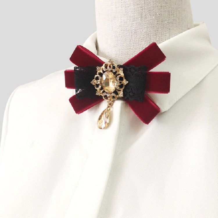 Unisex Flannel Bow-knot Bow Tie Retro Diamond Professional Brooch Clothing Accessories