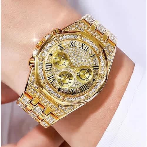 Buy Unisex Ice Out Wristwatch - Gold in Nigeria