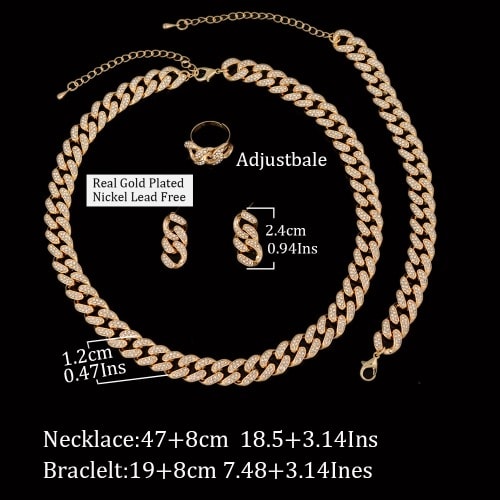 Buy Unisex Iced Out Cuban 18k Gold Plated Jewelry Set in Nigeria
