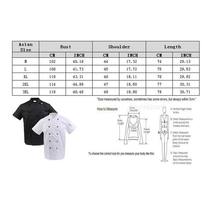 Unisex Double Breasted Short Sleeve Chef Jacket Coat Cook Hotel Uniform