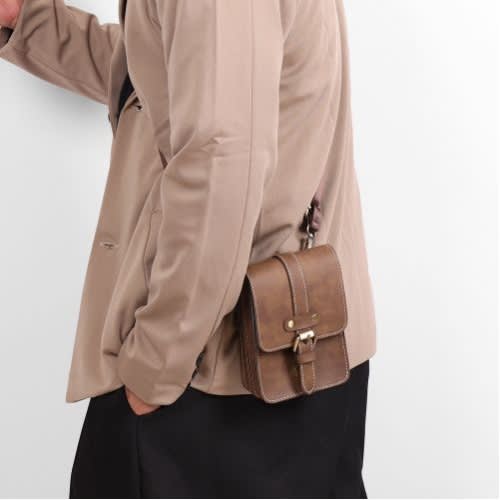 Men's Leather Chest Bag - Casual Sling Shoulder/ Waist Bag - Brown