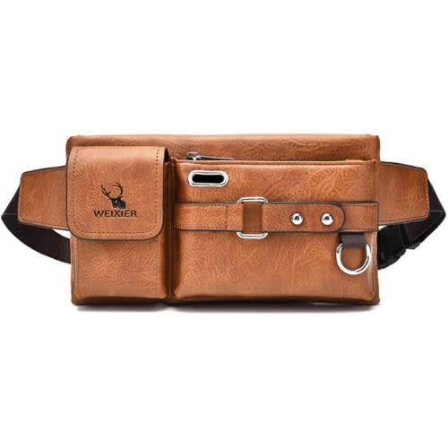 This stylish fanny waist bag with 3 pockets made of durable PU leather material, spill-resistance, light durable for long lasting.Large capacity to hold all your daily items such as keys/ID cards/cell phone/wallet/ and moreComfortable adjustable strap for different types wearing to be a waist bag, shoulder bag, sling bag or chest bagLightweight, fashionable and both for women and men using.Great for running, hiking, riding, walking, shopping, traveling, street dressing and etc.
