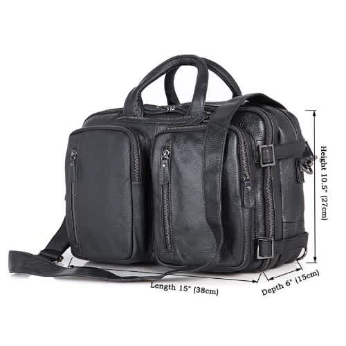 15" Convertible Multi-pocket Leather Backpack - Messenger Laptop Bag