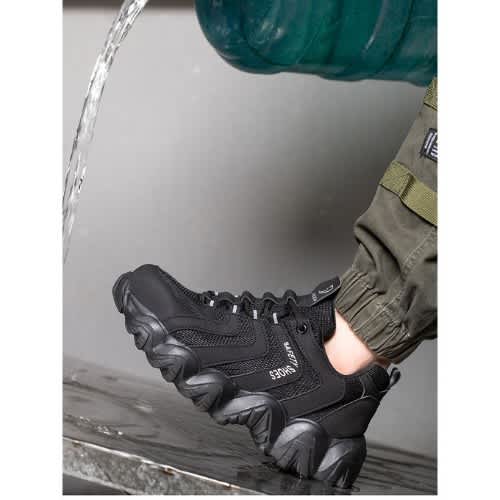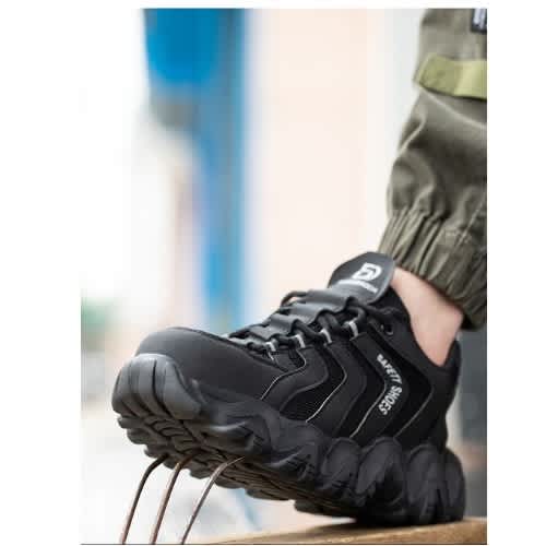 [STEEL TOE CAP]: The steelhead of LARNMERN steel toe shoes can withstand 15KN static pressure or 200J impact force to protect your feet from falling objects during work.[CUSHIONING SUPPORT]: Steel toe shoes have a streamlined sole skeleton design to reduce the shock brought by the ground, every step can provide sufficient cushioning and support.[COMFORTABLE FIT]: The soft sponge lining provides continuous comfort and insulates the foot from discomfort caused by friction with the shoe lining.[BREATHABLE]: The upper is made of fly-weave technology, which can keep the interior dry and ventilated even after long work hours.[APPLICABLE SCENARIOS]: Our work shoes are designed to fulfil work in every industry. LARNMERN steel toe shoes can be used not only as industrial & construction shoes but also for daily outdoor activities.