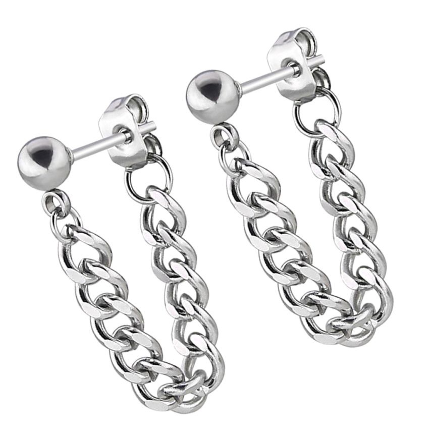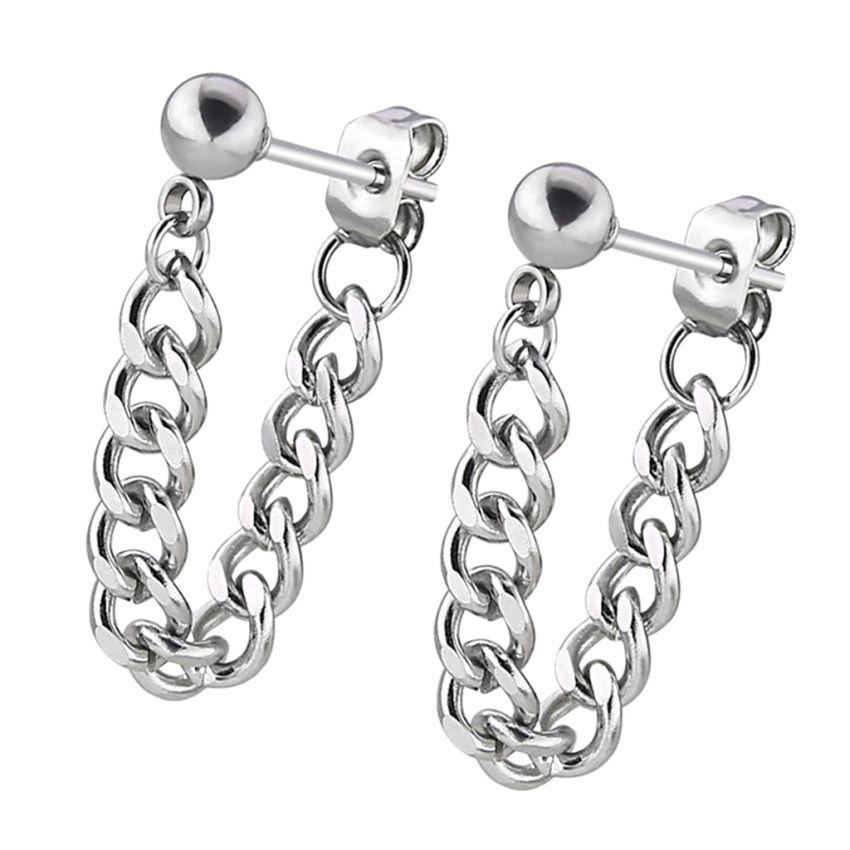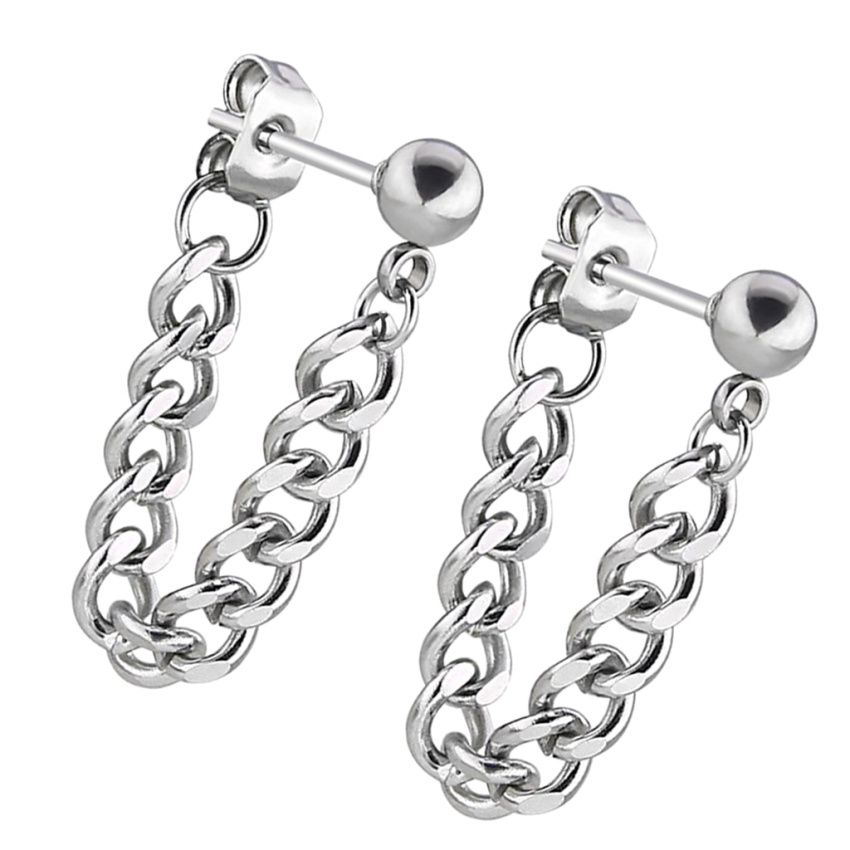 Hip Hop Stainless Steel Tassl Chain Dangle Earrings, Great Gift for Friend, Lovers, Family, etc.