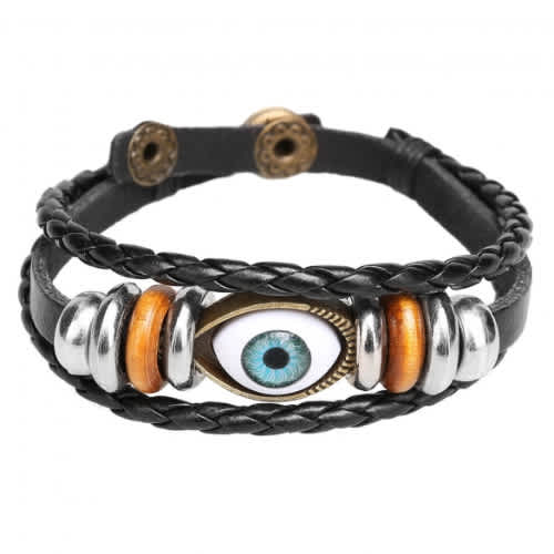 Unisex Turkey Blue Eyes Braided Cowhide Bracelet - Black