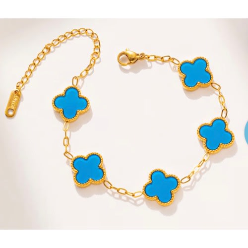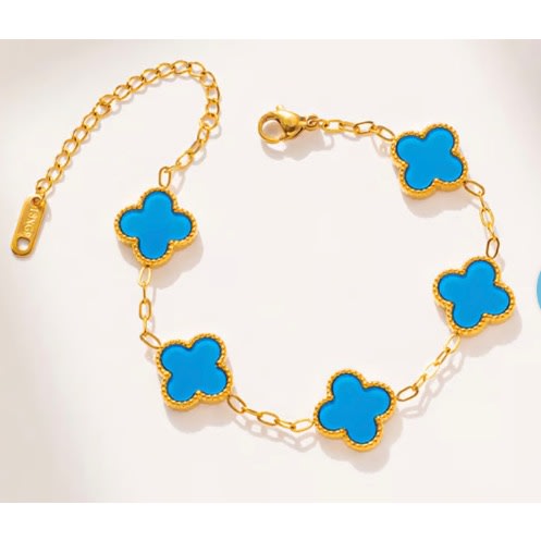 Buy Unisex Vanclef Bracelet 7inches - Turquoise Blue & Gold in Nigeria