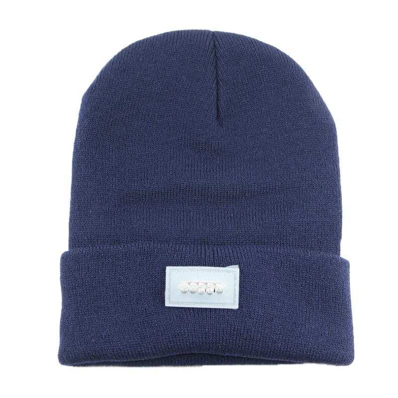 Unisex Warm Winter Polyacrylonitrile Knit Hat Adult Head Cap with 5 LED Light (Navy Blue)