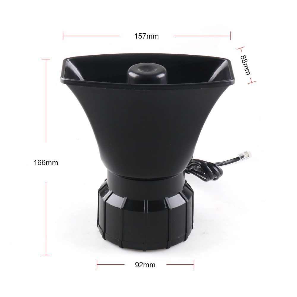 Features: 7 siren sounds Car siren speaker can make 7 alarm loud and clear sounds. PA system Car siren speaker are built in public-addre system. You can talk to other people with this mic in your car. You can also have a joke with your friends, they will not know who is talking. Universal Suitable for Any 12V Vehicle: car siren speaker can be installed in any vehicle with 12V DC Power. You can install it in Car, Truck, Jeep, RV, Boat, etc. High quality High quality ABS-plastic housing + holder.Package includes 1 x Speaker, 1 x PA mic, 1 x Pack of installation kit. Practical Car siren deals 80W car siren horn with mic PA speaker system emergency sound amplifier to be very load and audible even you are in a distant place. Specification: Type: Car siren Material: Plastic Quantity: 1pc Item Color: Black Voltage: DC 12V Power: 100W Speaker Size: 16.9*15.9*10.9cm / 6.7*6.3*4.3” (L*W*H) PA Mic Size: 6.2*5.8*10.3cm / 2.5*2.3*4.1” (L*W*H) Net Weight: 614g / 21.7oz Package: 1*Speaker 1*PA Mic