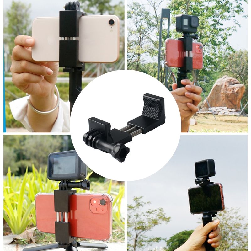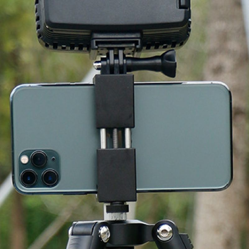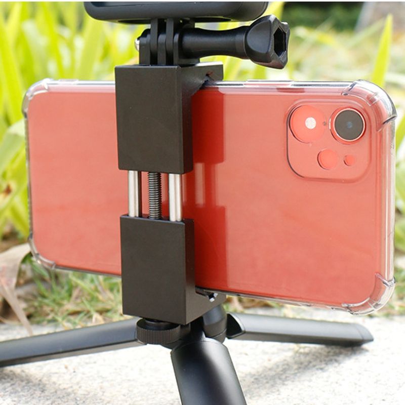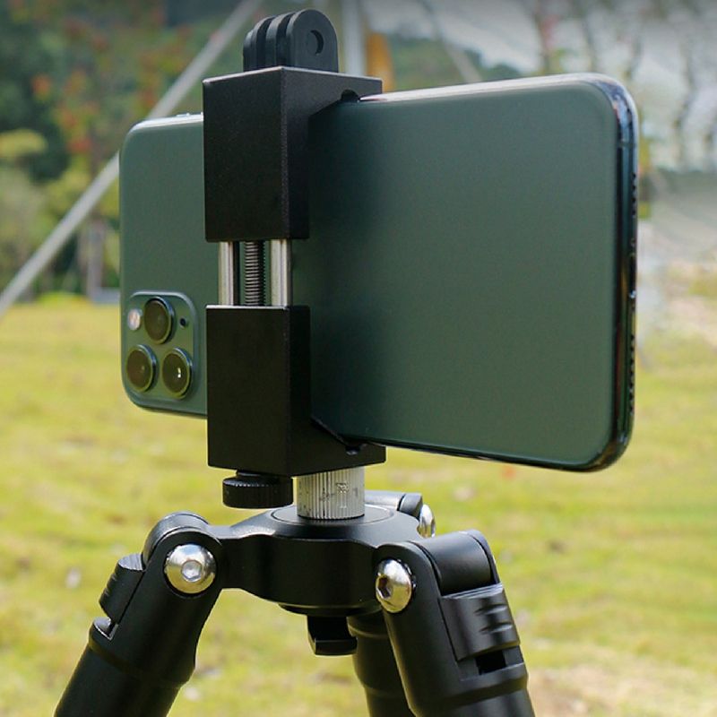 The bracket has a 1/4 inch screw hole on the bottom, which makes it compatible with many tripods.