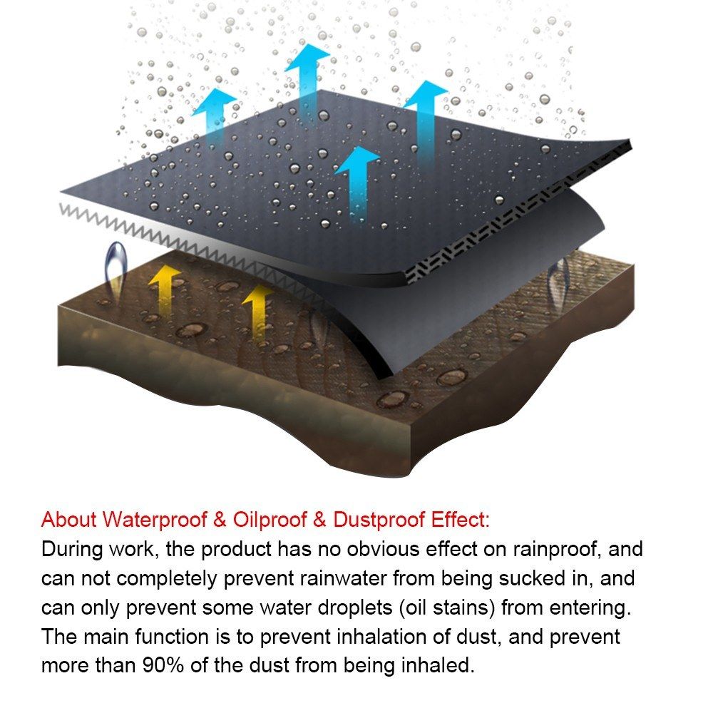 Prevent some water droplets and oil stains from entering, the main function is to prevent inhalation of dust, prevent more than 90% of the dust from being inhaled.