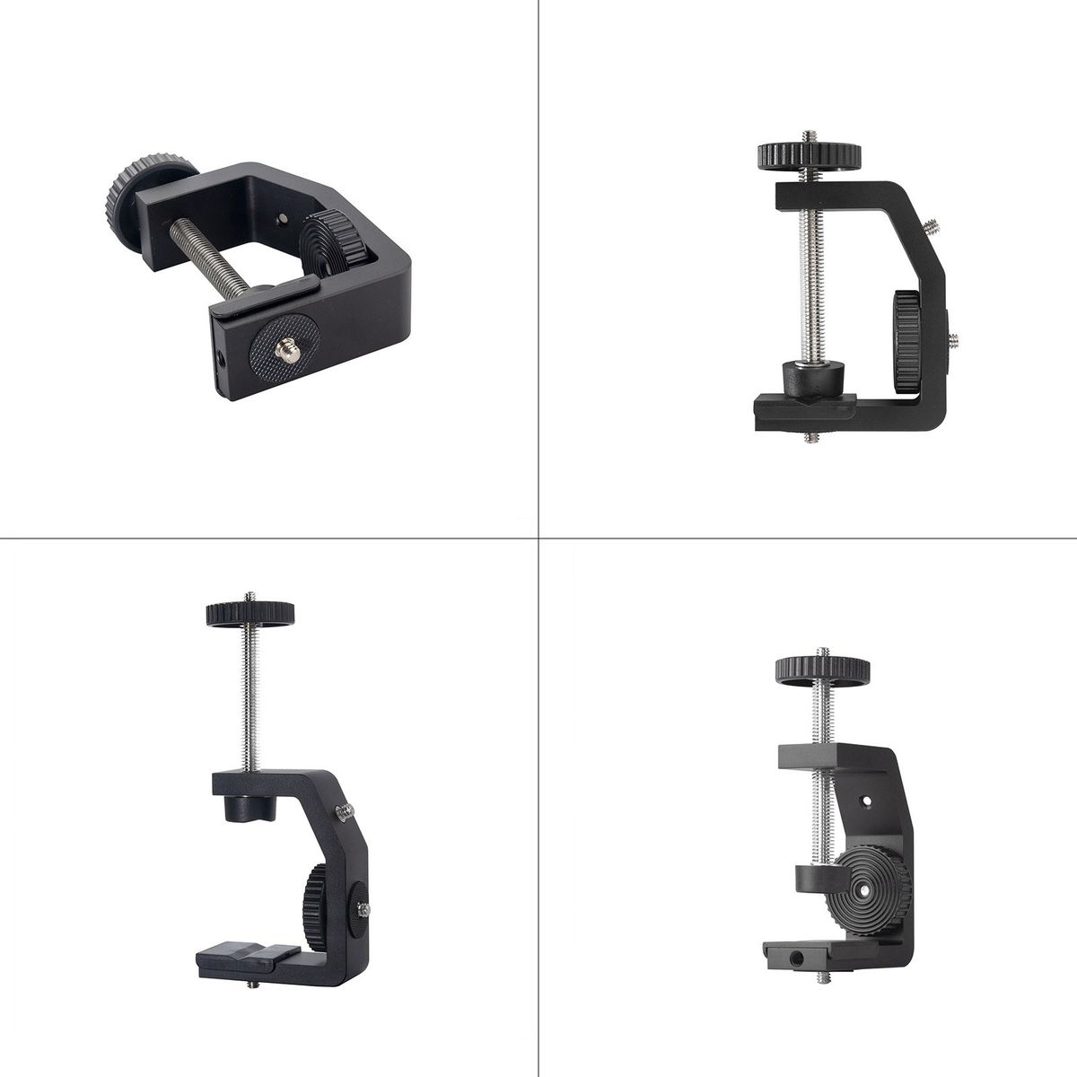 The well-designed adjustable C clamp mount can be attached to desks, tables, benches, carts, railings, and more within 6cm wide, very flexible to use.