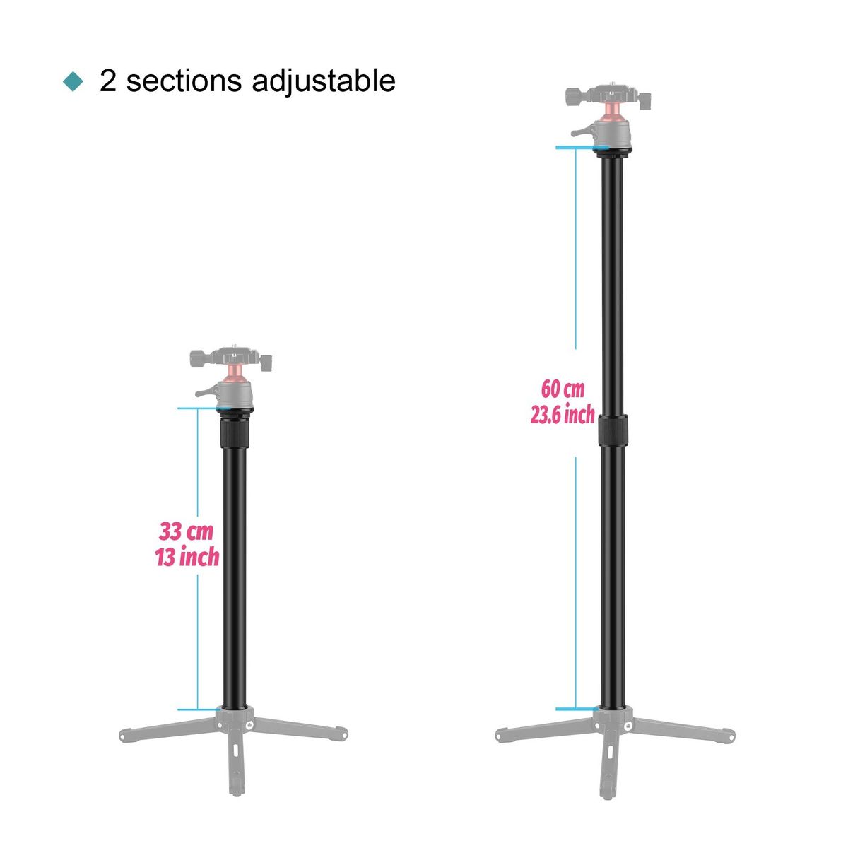 The extension rod helps to get a higher and wider shooting view, exploring more photography positions and possibilities, just enjoy creative photography!